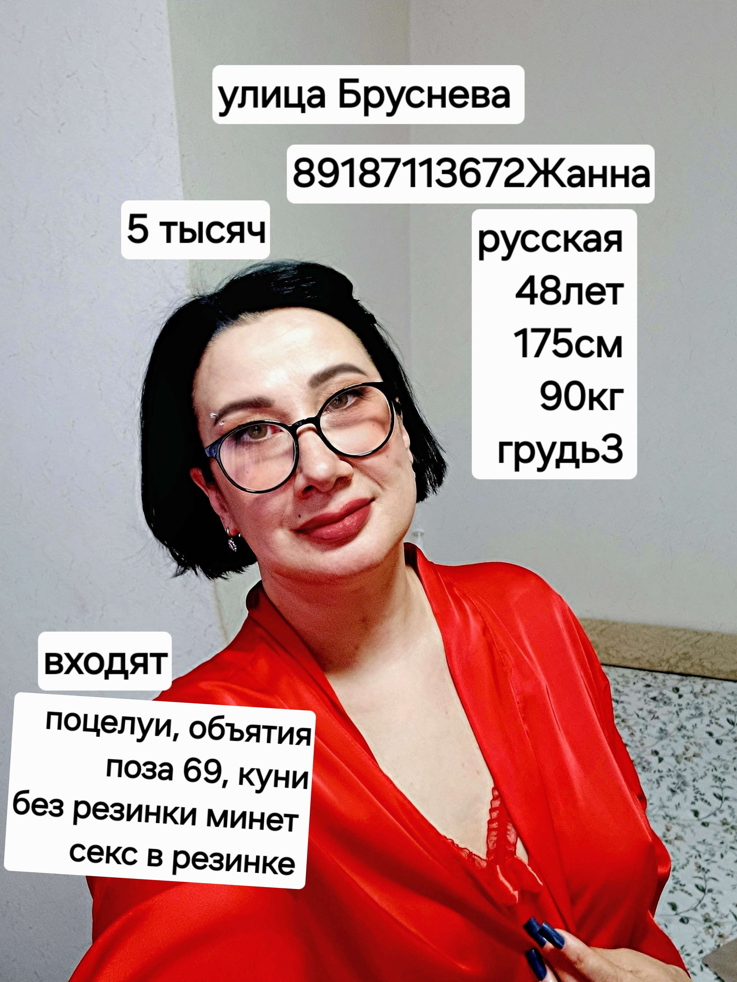 Роскошная, зрелая, знает своё дело на все 100%. Езжу только к ней!!!! Минет со стонами делает, заглатывает по самые гланды, любит это дело! Писюшка с причёской, пушистик, возбуждает нереально!!!! Обязательно буду посещать по мере возможности.